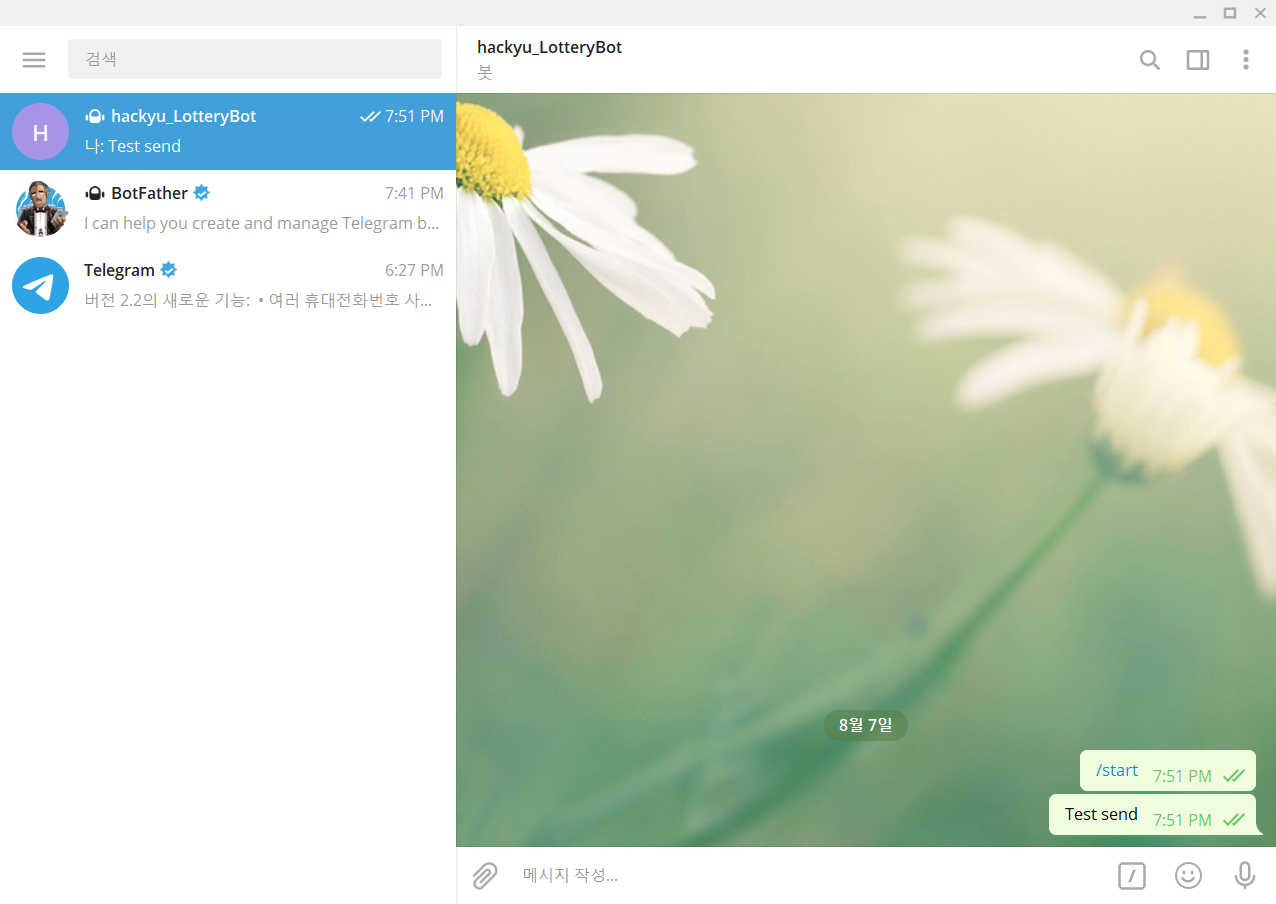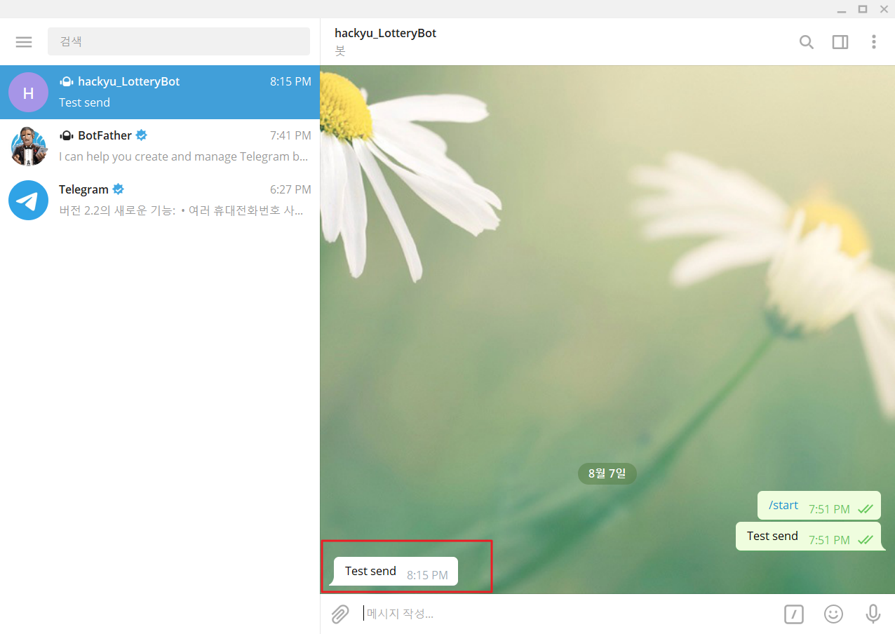 생성된 Bot에게 메시지 보냄