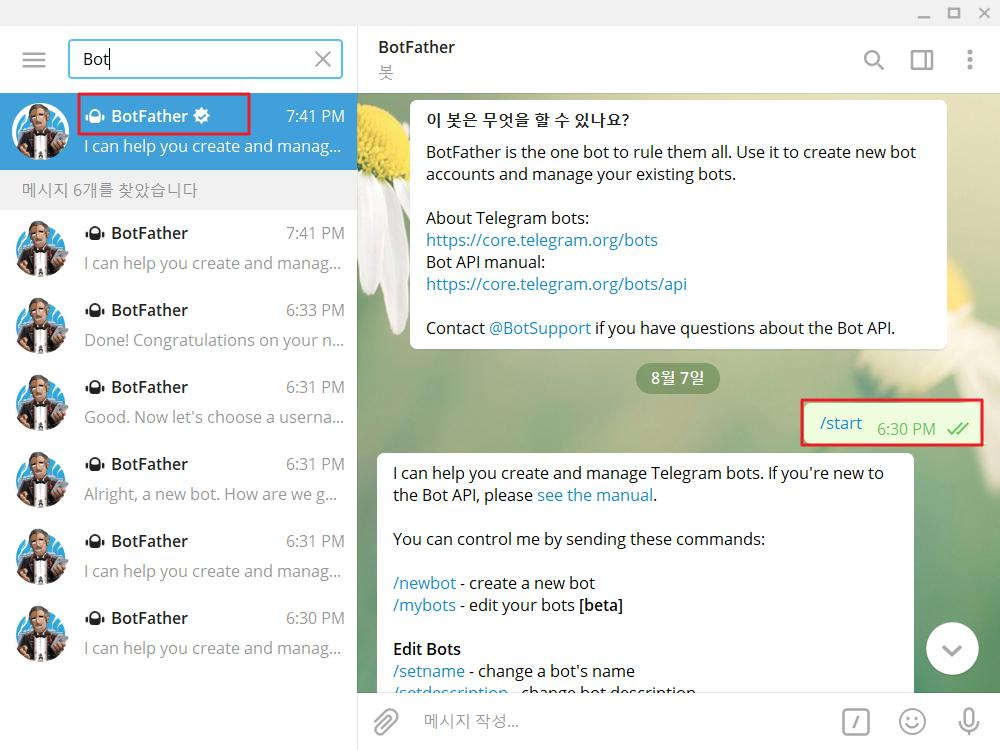 Telegram의 BotFather를 이용