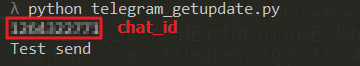 위의 스크립트 실행결과로 Chat_id와 text인 마지막 업데이트된 내용 Get 확인